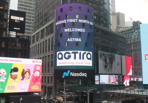 Agtira hälsades även välkomna på Nasdaqs stora skärm vid Times New Square
